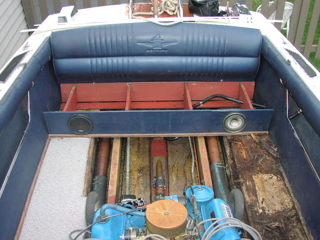 ![]() Photo of Resorter from the 1970 Century Sales Catalog 1970 Century Resorter Interceptor 300 / Ford 427 me@thedougout.com 18' Century Resorter The most sought after color, with the most sought after engine. A rare find... and I'm really hoping it finds a good home. I have a 1970 Century Dealer Pack that has the 427 hand-written in as an option, with the notation "NO WARRANTY". Over the years I've discussed this with a couple Century shops, who have indicated that the Resorter's 427 option in 1970 was extremely rare. I had the engine rebuilt by McQuillen Racing Engines in 2004, with minimal usage since - less than 20 hours. An MSD electronic ignition was added at the time of the rebuild. All of the floorboards and part of the stringers were replaced in 2003. New engine box and upholstery from A&A marine. Boat has a full cover, plus the original fully-enclosed bimini cover. Depth finder added within a chrome frame matching the main gauge cluster. Comes with a 2008 Yacht Club trailer with surge brakes. The boat still has the original gel coat, and has a fair share of the expected scratches. There's an epoxied circle on the side where a previous owner had installed and removed a bilge pump. The top deck has several screw holes from who-knows-what over the years. This is not a show-boat, and the asking price reflects that. It is, however, ready to be dropped in the water and fired up. It looks absolutely fantastic in the water. Heads will turn. The following videos were taken September 2011 The following photos were taken September 2011 ![]() ![]() ![]() ![]() ![]() ![]() ![]() ![]() ![]() ![]() ![]() Beneath the aft bench seat is the anchor bag, fenders, and fire extinguisher. ![]() Inboard drive shaft beneath the aft floor board ![]() Under front seat, fore access panel removed. Depth finder puck. ![]() Under front seat, fore access panel removed. Battery compartment, fore bilge pump. ![]() Under front seat, fore access panel in place ![]() Fuse panel beneath dash. ![]() Under bow, fore bilge pump outlet. ![]() Original Century Hull & Serial Number. Throttle assembly. ![]() Unused fitting through front dash ![]() Unused antenna mount on portside. ![]() Unused mount on starboard. ![]() Side step (cover support in place). ![]() Portside exhaust (this is the blower outlet). ![]() Epoxied hole from old bilge pump outlet on portside. ![]() Trailer tongue with surge brake actuator. ![]() Behind front seat, MSG Ignition Box on stainless steel panel, MSD Distributor. Fresh water pump. Throttle Cable. ![]() Looking down on engine from front seat. Note: the ignition control cable (purple/green) is disconnected from winter storage. ![]() Oil cooler - four fittings: engine in/out, transmission in/out. ![]() Starboard side of engine. Oil dipstick. Starter solenoid. ![]() Starboard side of engine. ![]() Engine casting number: C7JE (1967 Marine Block). It is believed to be original to the boat. Two ignition cables. Exhaust gasket. ![]() ![]() Original Documentation ![]() 1970 Century Dealer Pack which had pricing for all available models and motor options. The 300 Interceptor option for the Resorter was hand-written in with the notation of "No Warranty". The base price of this engine model was $7120, which when adjusted for inflation is just over $42,000. ![]() Original Century owner's manual and original Interceptor owner's manual, with original engine tag showing model 300RS (300 horsepower, right-hand rotation, raw water cooled) ![]() Original 1970 Century sales brochure, showing the Resorter 18 page ![]() Original Hull and Serial Number tag The following photos were taken Fall 2003 to Spring 2004 (pre-restoration and during restoration) ![]() This is what $5000 bought me in 2003. A 1970 Century Resorter with the Ford 427 engine. It's a rare combination, possibly the only one in existence. It deserved to be rescued. ![]() New floor boards being dry-fit. ![]() New floor components in the process of being epoxied ![]() New side pockets cut to size and waiting to be epoxied ![]() Front portion of stringers removed and existing stringers being sealed. Old dashboard with bilge-pump switches to the right. These were later replaced with a new "sub-panel" that houses a depth finder gauge. ![]() New floorboards installed ![]() Dry fit of stringers and front floor ![]() Repaired stringers in the process of being fiberglassed ![]() Front floor (with access panel) installed ![]() Rear seat bottom installed (gas tank visible) ![]() Rear seat complete ![]() Rebuilt dashboard ![]() Engine removed ![]() Engine stripped down, ready to go to McQuillen Racing Engines in LeRoy, NY ![]() VelvetDrive transmission stripped, cleaned and painted ![]() Speechless. The following photos were taken post-restoration Summer 2004 ![]() ![]() ![]() ![]() |